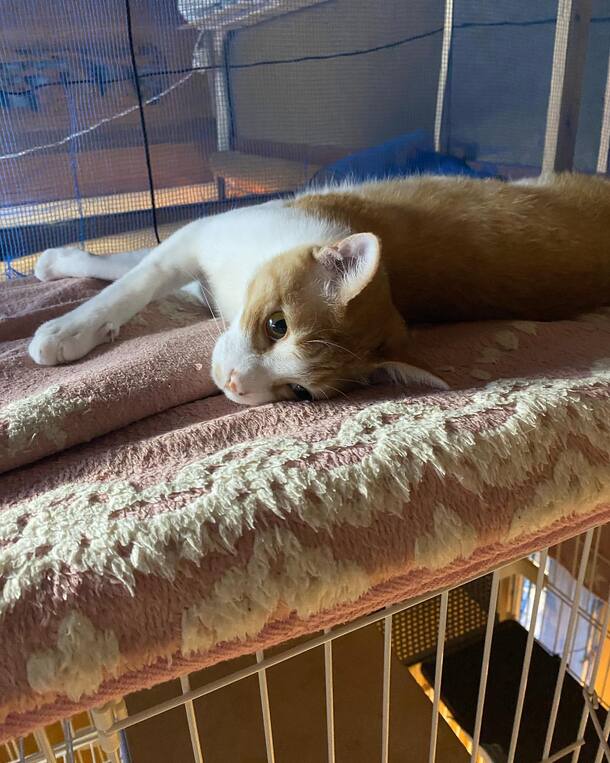 今日のサンタはゲージの外に出て子猫たちとくつろいでいました💚