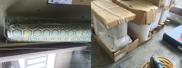 右:大家さんのご厚意でトイレを新しいものに変えて頂きます。