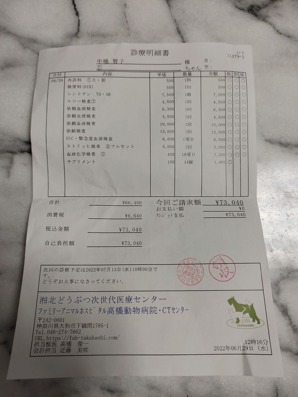 💩検便や、精密検査等がいつもよりプラスでしたので、かなり高くなってしまいました‥‥😭💦。