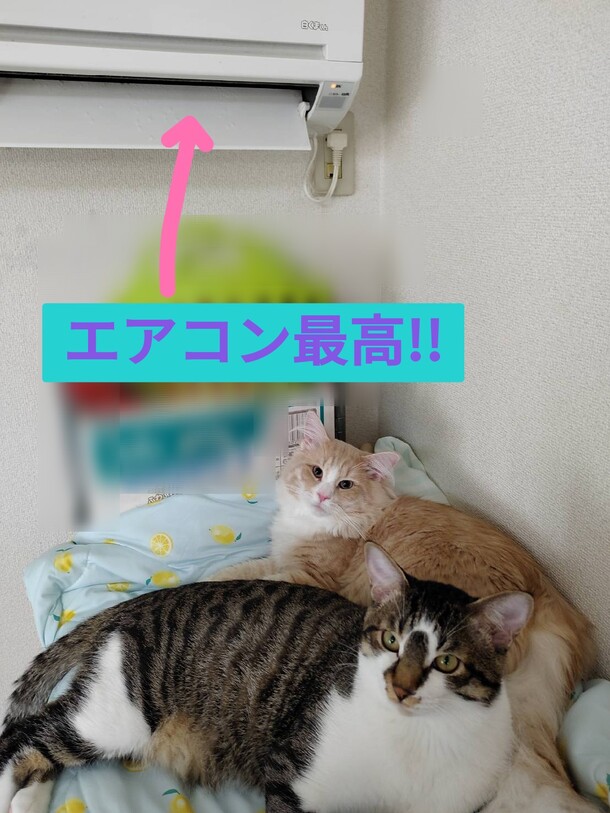 最近は、長毛なので暑さを凌ぐ為、エアコンの真下や、石の上で良く涼んでる事が多々あります😅💦。