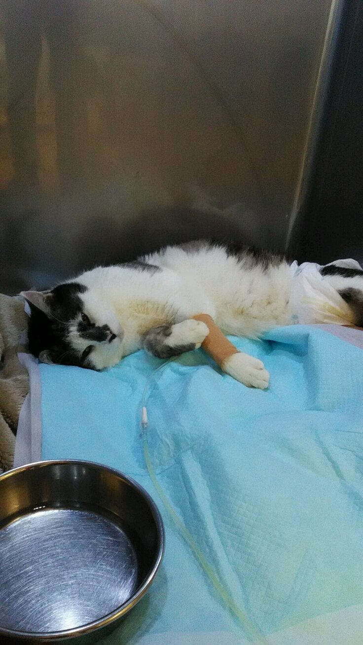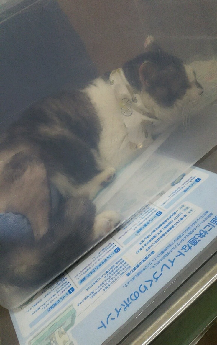 手術後血尿は止まっており、食欲もあるそうです。面会に行くとホッとしたようなお顔を見せてくれます。