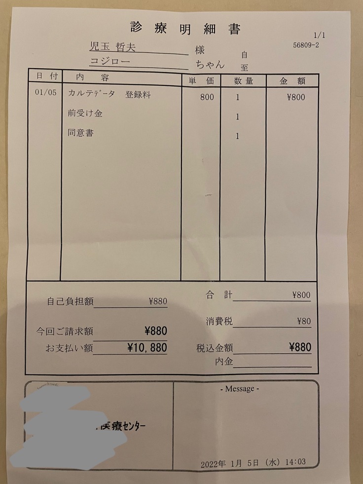 こちらの病院では手術ができないので、犬山市にある病院の紹介状を書いていただきました。
