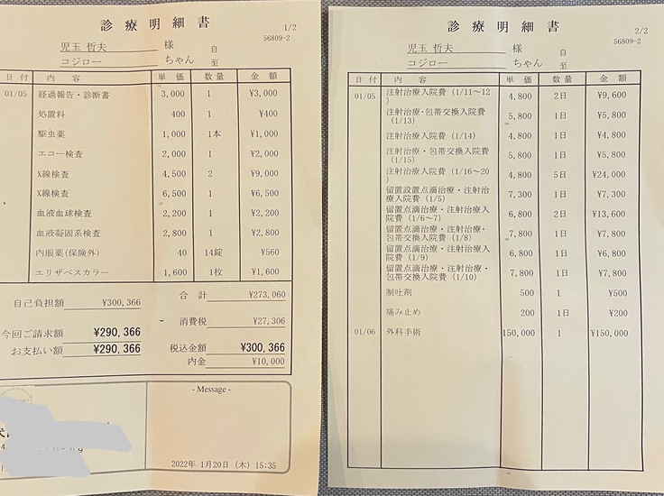 ※今のところ術後の経過も良く元気にしておりますが、万が一亡くなってしまった場合、いただいた支援金についてはこれまでの治療費に当てさせていただきます。