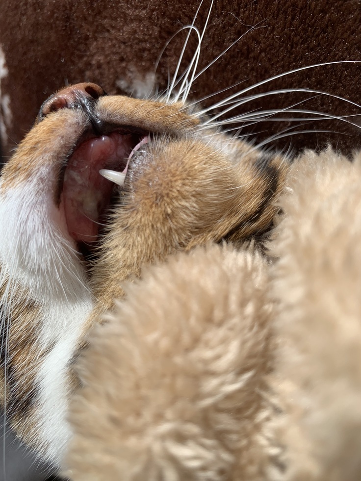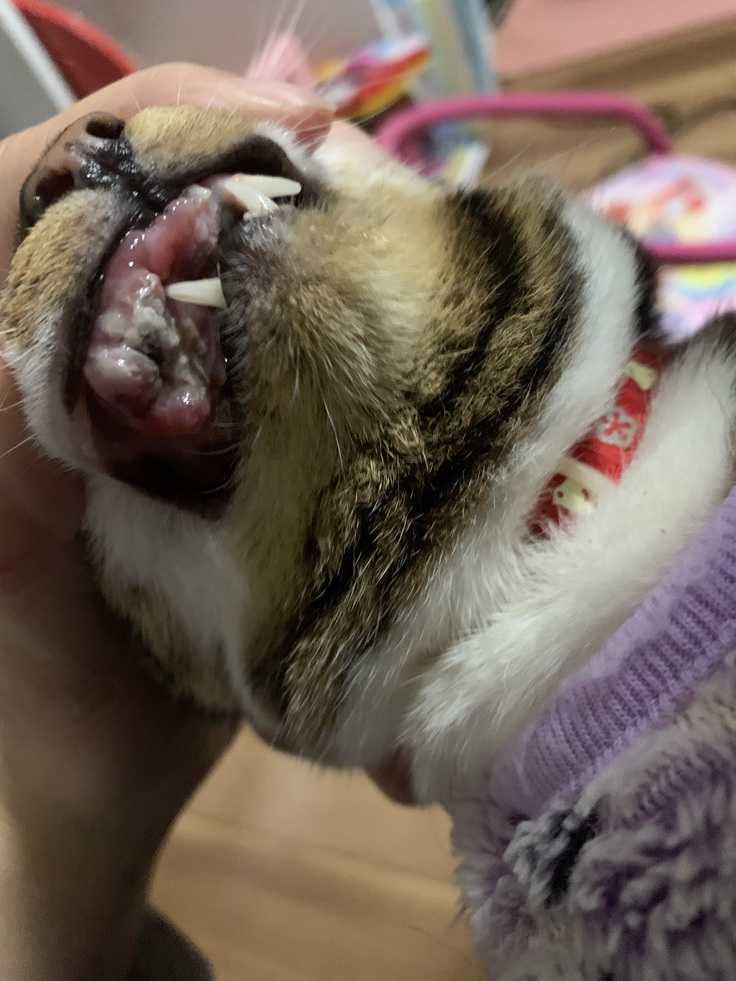 今の状態は、上顎にできた腫瘍が膿をもち、痛みが強くちゅーる系のみです。