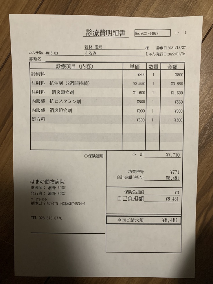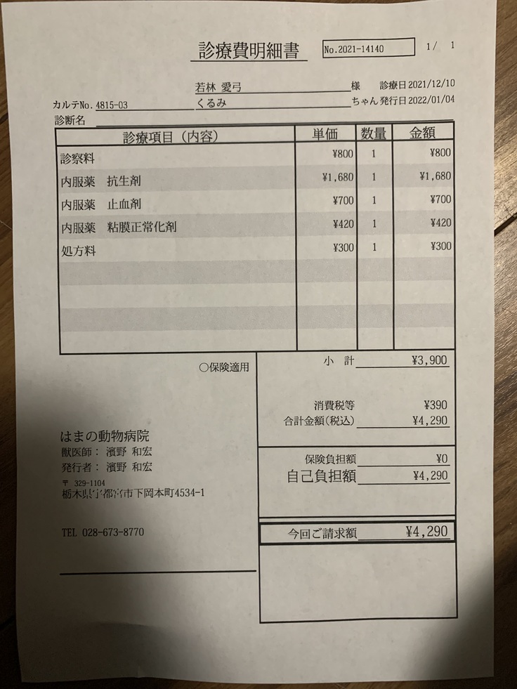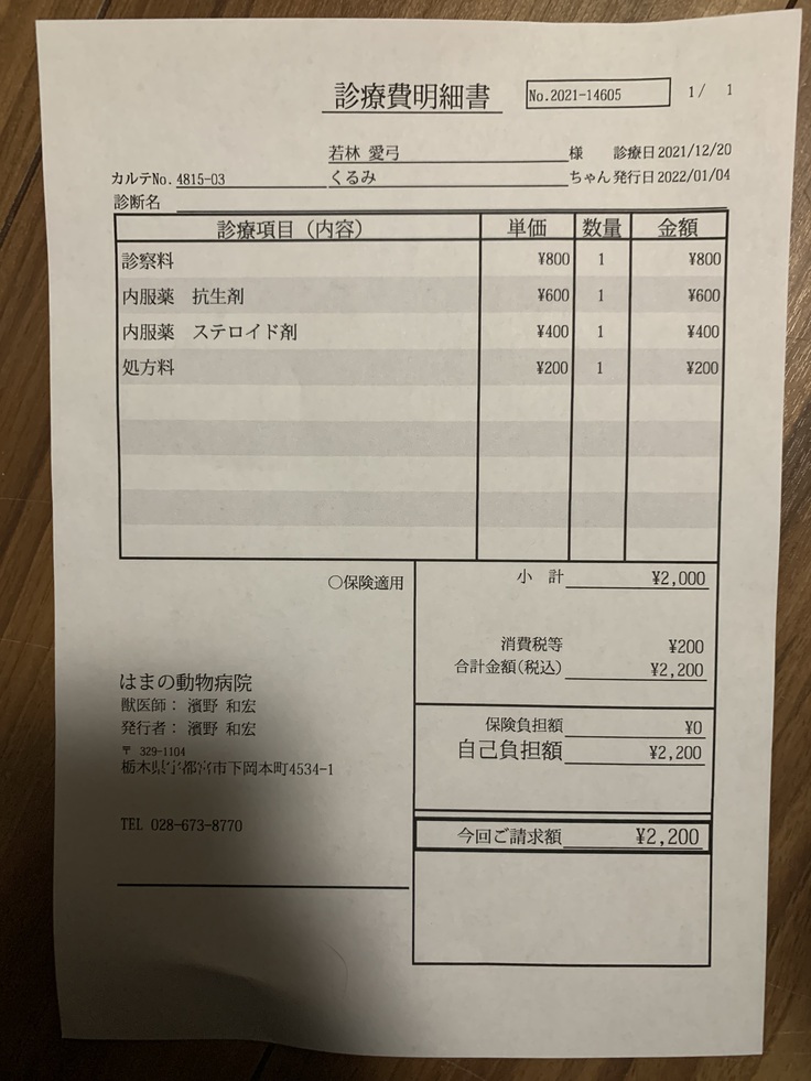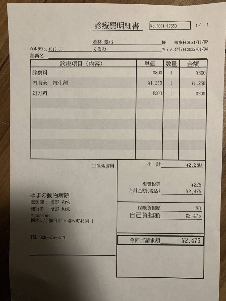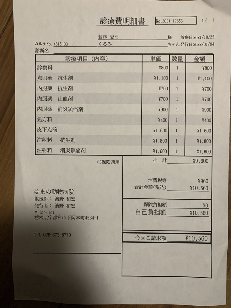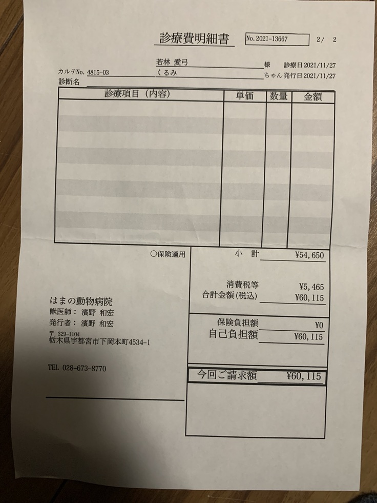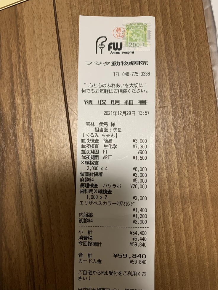その背景には、当初くるみの治療費、緩和ケアと考えていた金額より遥かに跳ね上がっているからです。約1ヶ月の通院費が当初4万円と考えておりましたが、病気の進行悪化とともに処方する薬、フード、シリンジ、補液なども増え、1ヶ月の治療費が約6万以上かかってきています。