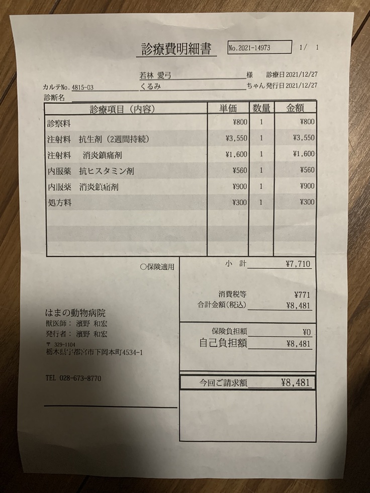 これらは猫貯金でまかなって来ましたが、さらにこの一週間で約2万治療費がかかりました。