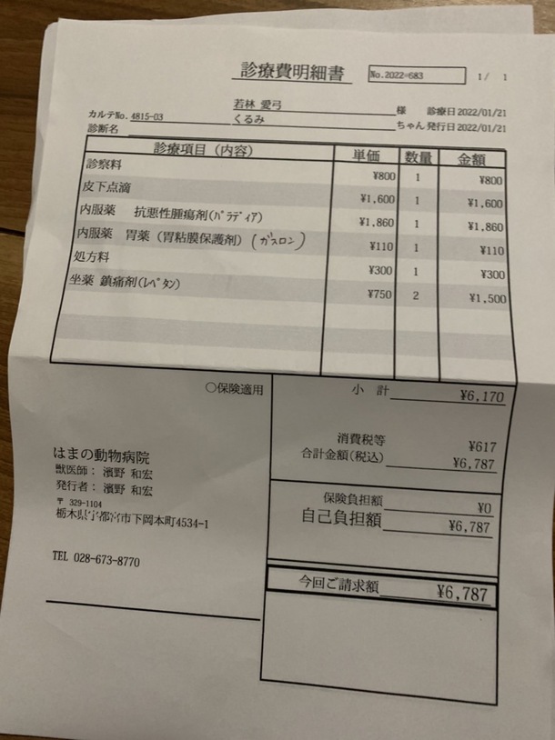 くるみの体重が3.45キロ→3.2キロに減っていました。皮下点滴、パラディア錠、胃薬、鎮痛剤処方してもらってきました。