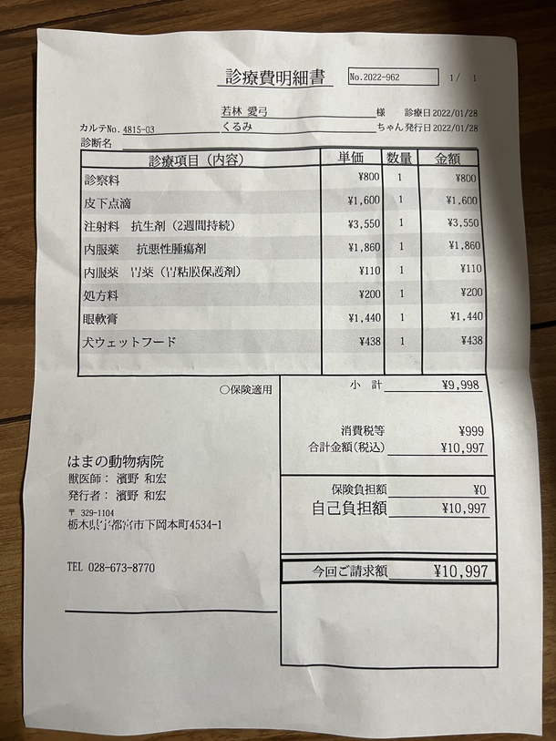 くるみの右目の状態が悪く、目ヤニで開かない状態になって来てしまいました。