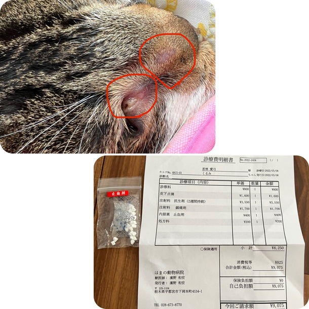 ・鎮痛剤br> 口の中の腫瘍が喉の方にまで行っているようで、ここ最近給餌の際、飲み込みが悪いのと、どうしてもくるみが食べることを嫌がっています。