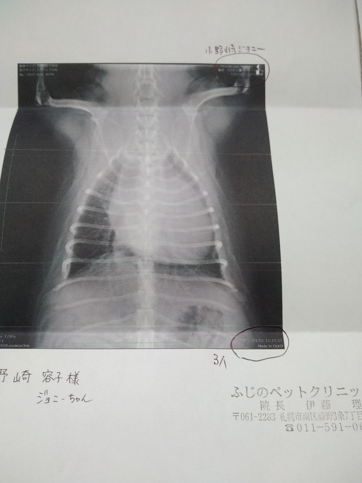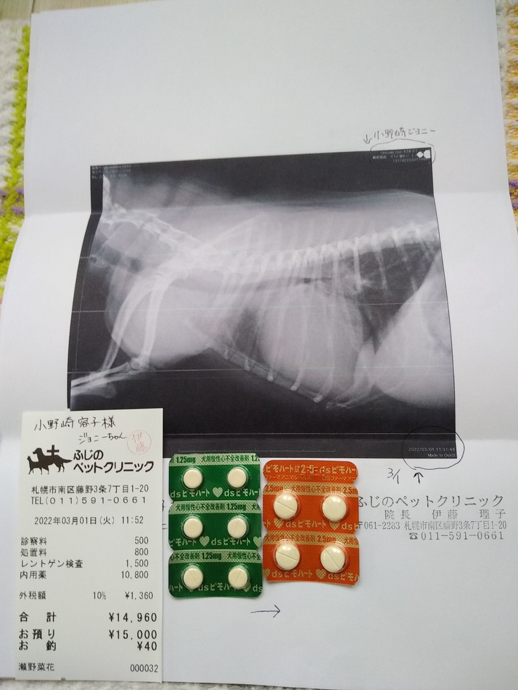 3月1日咳き込む事が多くなりレントゲン検査を受けました。心臓が又少し大きくなり気管を圧迫して咳き込んだり、吐いたり