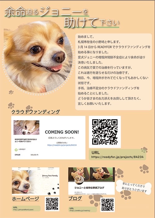 心からの感謝のメールを送らせていただきます。ホームページでジョニーの活動を報告致します。