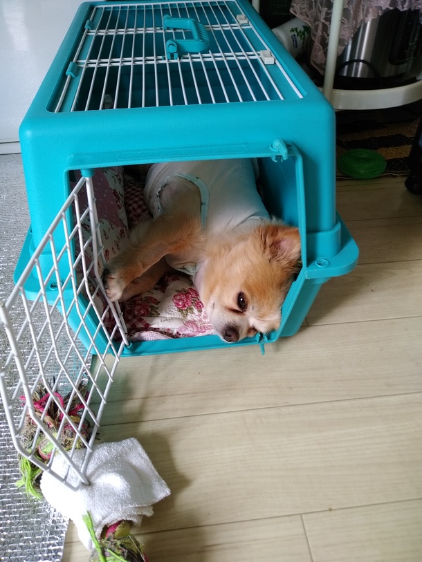 有難うございました。退院して、リラックス。お気に入りの、キャリーに入って、