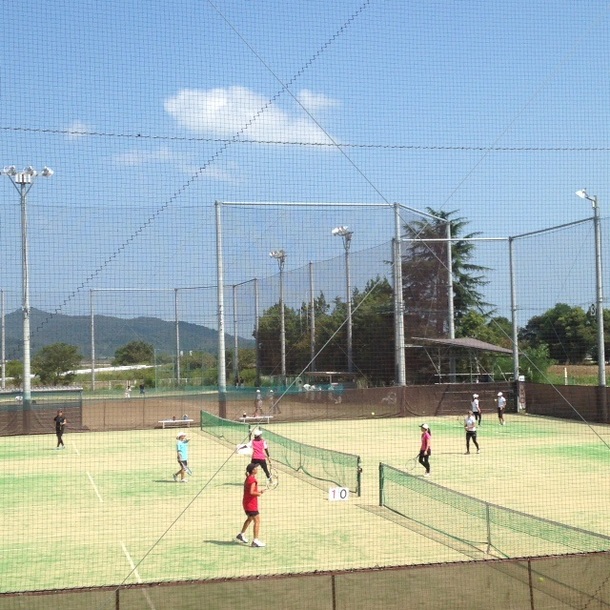 BBQの最後にはみんなで絢香の「みんな空の下」を歌いました。熊本も滋賀も空で、テニスで、そして友情でつながっています!