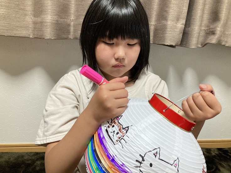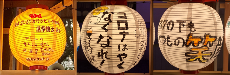 「この度は、提灯づくりに参加させていただき、ありがとうございました。今年はコロナの影響で、色々なイベントが中止になり、残念に思っていました。ですが子ども会のみんながつくったたくさんのちょうちんが飾られているのをみて大変楽しい夏の思い出ができました。」