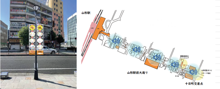 設置場所は、観光客の玄関口山形駅東西自由通路とペデストリアンデッキの予定です。