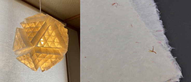 「紅花ちょうちんイメージ」/紅花の花びらを施した「深山和紙」