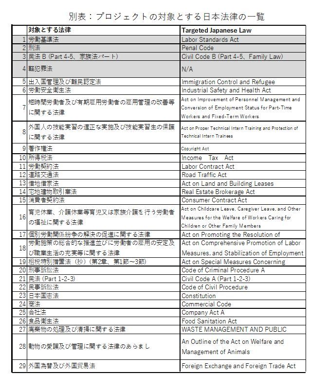 プロジェクト概要:日本の主要な法律をベトナム語に翻訳し、ベトナム人コミュニティーに無料に提供する。