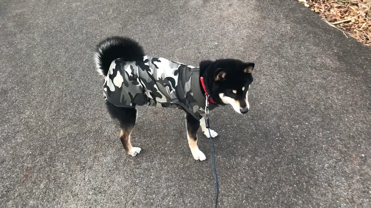 散歩中は大人しく着てくれています( *´艸`)