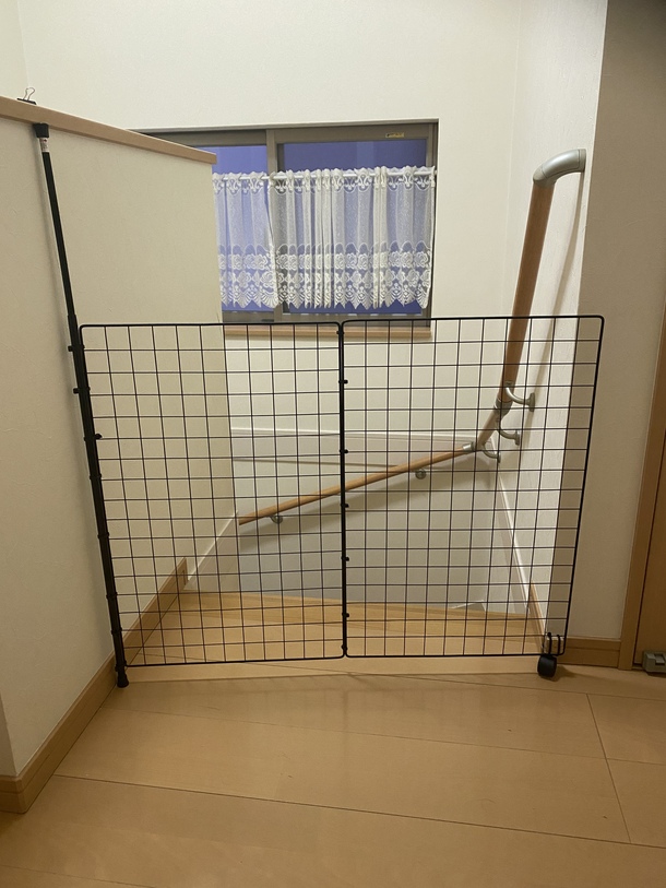 慌てていちごの所に行きましだが幸いにも怪我はしておらずいつもと変わらない様子で安心しました😮💨これはまずいと早急に対策をと思い、以前購入し余っていた材料と100均で材料を買い足し、開閉式のペットゲートを作りました!