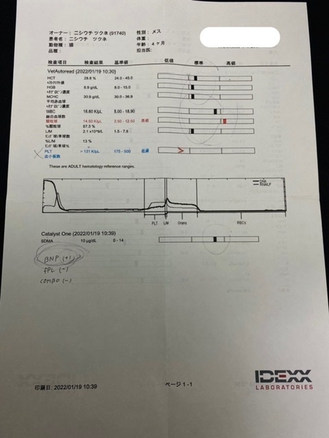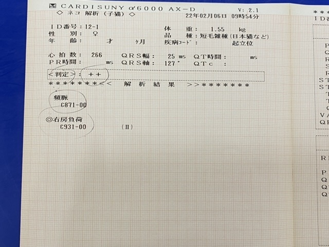 血液検査の結果つくねの心臓には異常があることがわかりました。