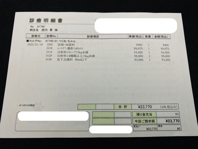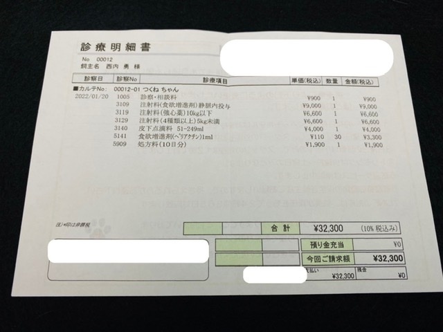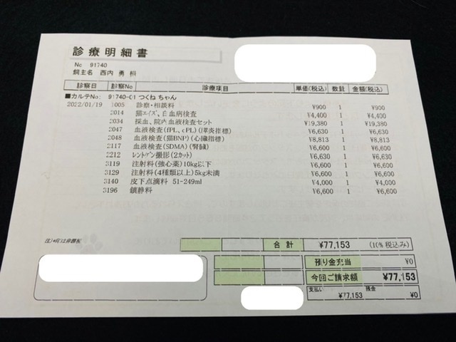 つくねの体調が悪化してから今日まで6日間の治療費は186,473円です。