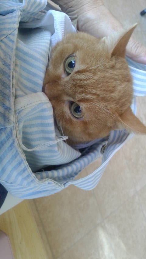 暴れるわけでもなく、ただぎゅうぎゅう、鼻を押しつけて、それが抗議なのか、扉を押し開けようとしてるのか、分かりませんが、毎回の病院通いで、そんなふうなので、柔かい布のバッグに入れてみました。