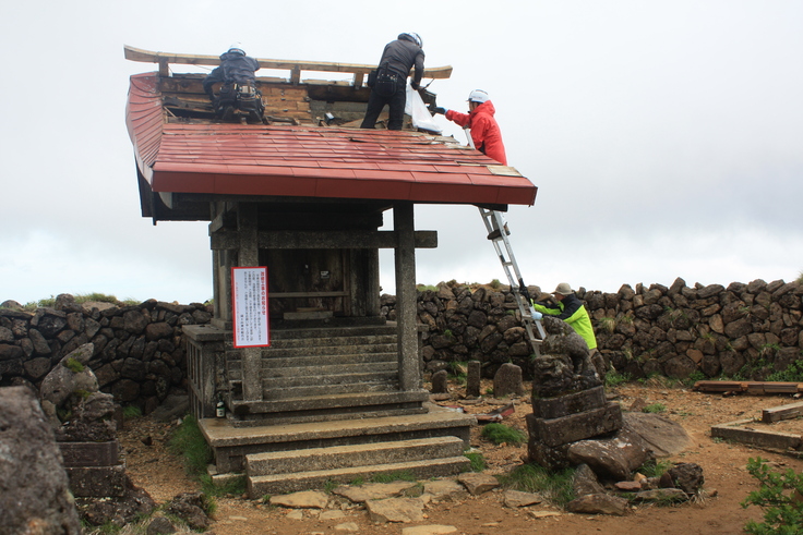 プロジェクト一同、一日でも早く実現する様進めて参りましたが、今年は例年になく積雪があり5月の下旬まで残雪がありました。その為資材運搬のための登山道(人力による運搬)の通行が困難な状態でありました為当初の工事計画より若干遅れておりますので、誠に申し訳ございませんがお詫び申し上げます。