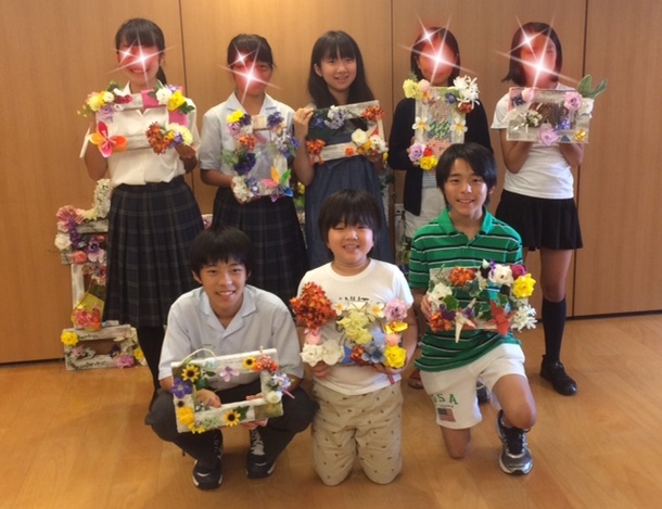 同じ学校に通われているお友達同士とあって制作中に友達の作品のよい所を褒めあったり、折り紙の折り方を教えあったり、和気あいあいと楽しく作業を進めていました。今回ご参加頂いた子ども達の作品は、世界無形文化遺産の和紙を多く使用したものが多く、日本文化を世界に紹介する素敵な作品に仕上がりました。