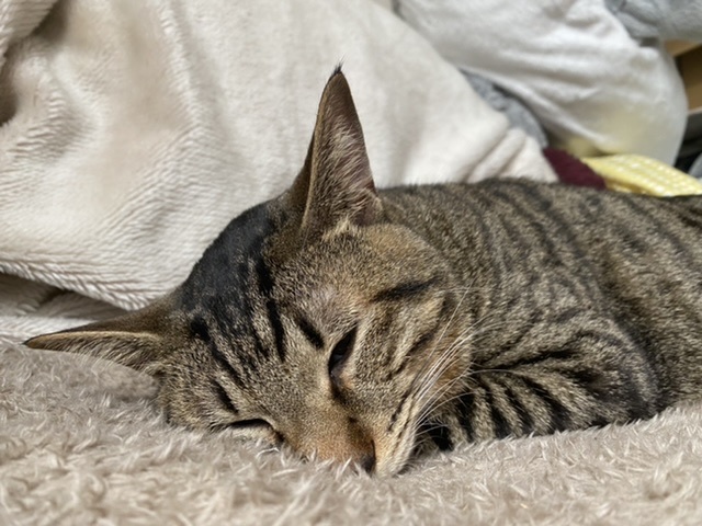 ↑いつも他の猫と一緒に寄り添って寝ています。寂しがり屋なのでよくくっ付いて過ごしてます。