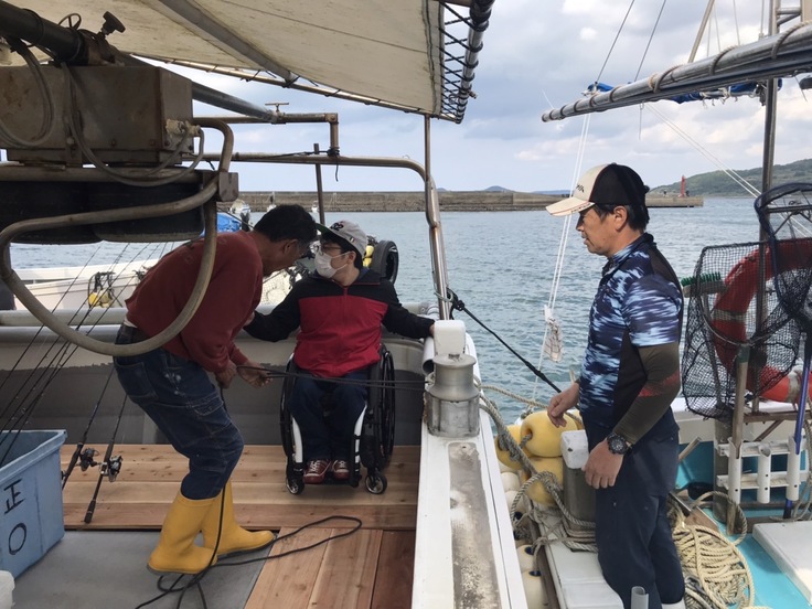 モニターツアーでは少し大きめの船をチャーターし、その船の後側船上部分を板張りで段差をなくし、車椅子でも自由に移動できるようにしました。その事で自分が釣りたい場所、船の右舷なのか左舷なのかチョイスすることができるようにしました。また、当日は若干風があり波があったのですが少し大きめの船だったので傾くこともなく、全く問題なく釣りを楽しむことができたのです。