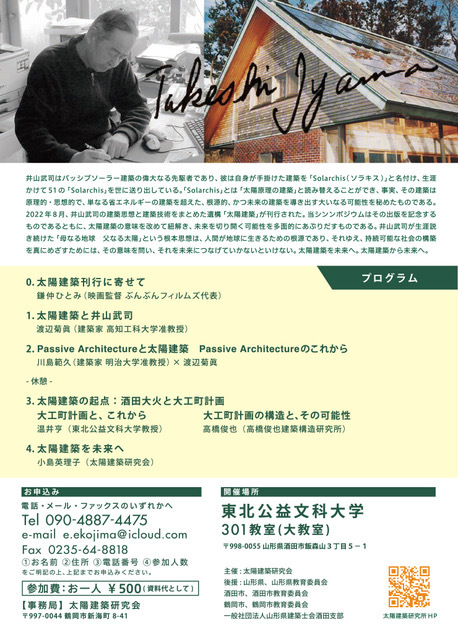 井山武司著「太陽建築」出版記念シンポジウム開催のご案内