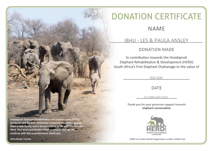 南アフリカ現地のイヴフ社(Ibhu(Pty)Ltd.)は販売利益の15%をHERD (Hoedspruit Elephant Rehabilitation and Development Trust) などへ支援しています。この取り組みはまた、SDGsの15番目「豊かな陸を守る」活動となり、絶滅危惧種であるアフリカゾウを守ることの一助となっています。HERDでは密猟などで孤児になってしまったアフリカ象の赤ちゃんの保護活動をしています。 日本では未だ第3年度目で、収益が出るまでに至っておりませんが、今年は収益を出すべく最大限の努力をしております。日本でインドラブジンを広め収益を上げることで、支援の原資にしていきたいと思っています。そのために皆様にご協力・ご共感いただければと思っています。