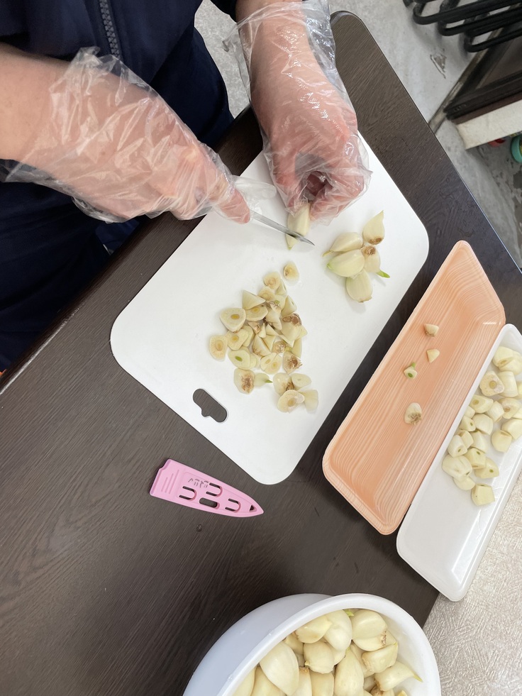 原材料のにんにくの選別・皮むき・カット処理・フライについては、利用者さんの手作業としてこれからも継続いたします。