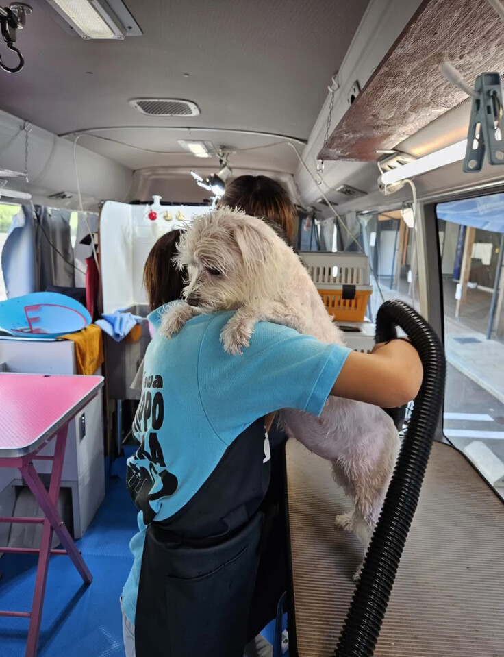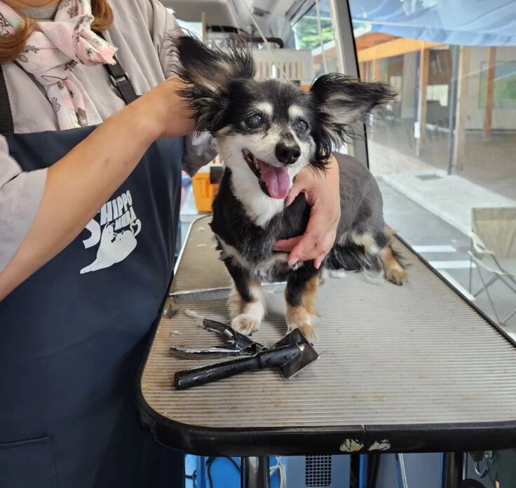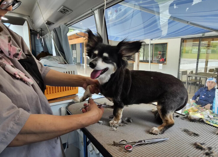 しっぽ村のトリマーと、活動にご協力くださったトリマーさんによる全身カットやシャンプー、猫の爪切りなどは
