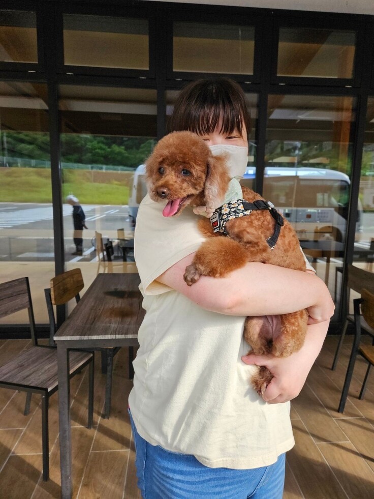 ちょうど背丈もワンちゃんとピッタリ(^^♪