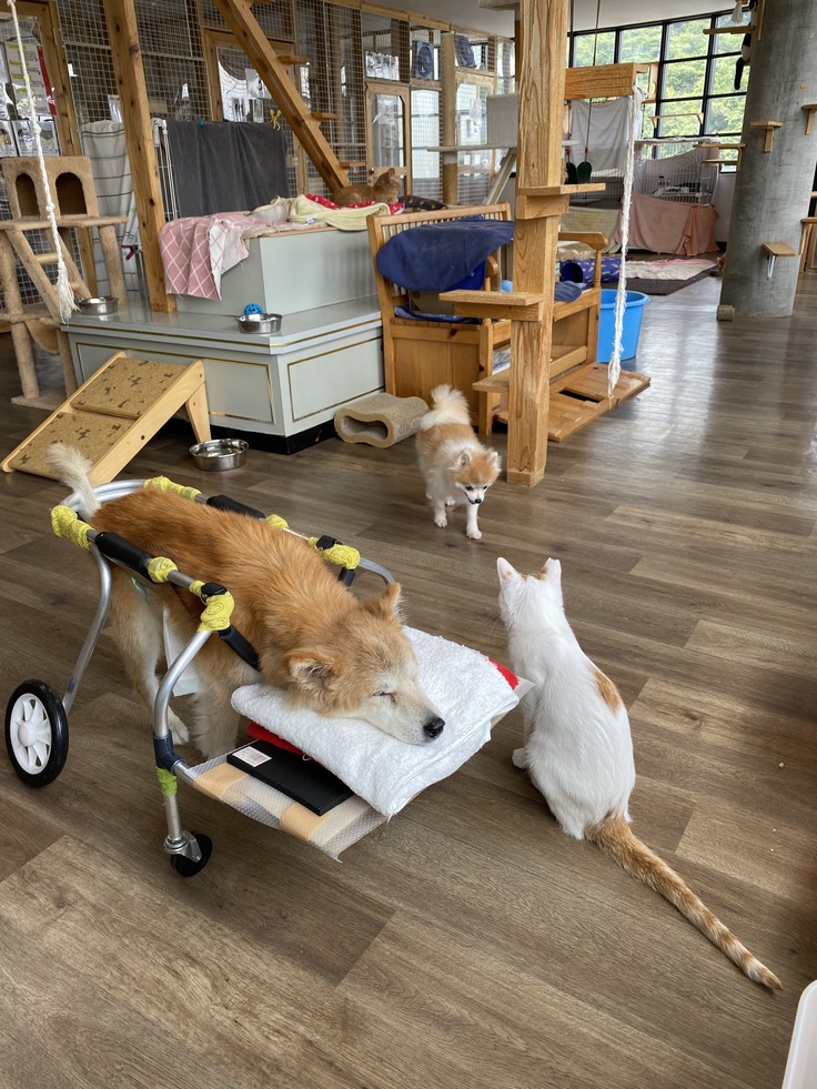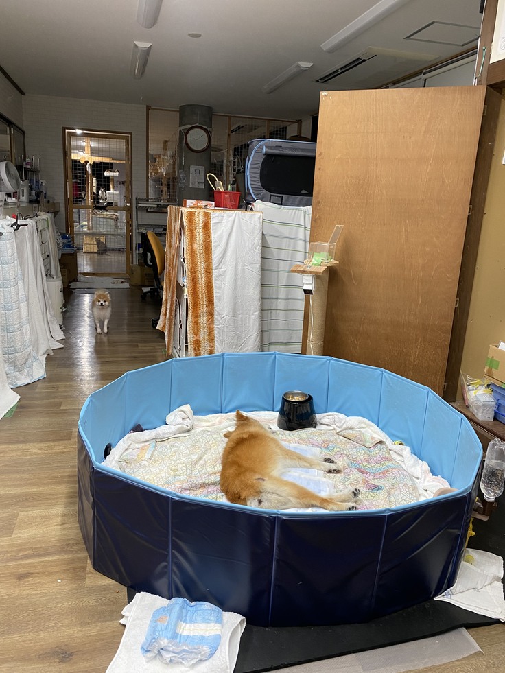 (検査等管理が必要な子たちは猫用のケージで過ごしています)