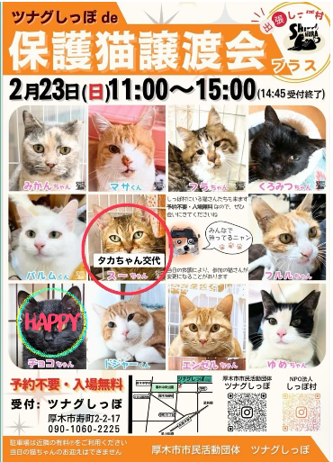 ツナグしっぽ店舗(厚木市)にて2/23に開催されました、猫ちゃんの譲渡会の様子を