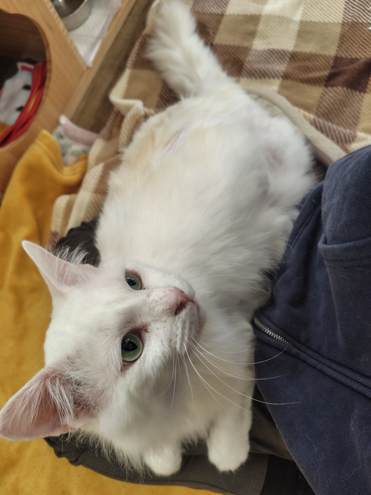 お膝の上に陣取られてしまい、なかなか仕事ができず困ってしまいます😅