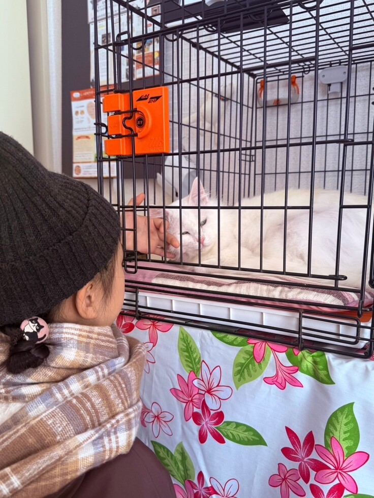 譲渡会会場に向かうまでの車内は大騒ぎで大変だったようですが、