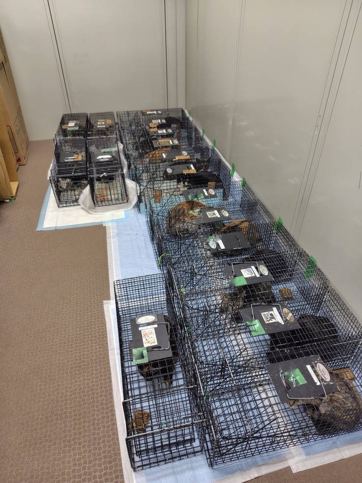 この日の捕獲では、オス猫とメス猫の比率はちょうど半々くらいで、メス猫の大半は妊娠していました。