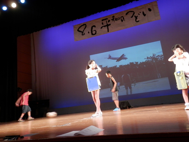 「8・6平和の集い」実行委員長の古賀 浩です。私たちは「ヒロシマ、ナガサキの悲劇を二度と起こさない誓い」と「平和憲法の大切さ」を確認する意味を込めて、毎年8月、北九州市教職員組合が中心になってこの「8・6平和の集い」を行ってきました。近年は実行委員会形式をとり、教職員と保護者で「集い」を創っています。毎年、まず「テーマ」と「シンボル」を実行委員会で話し合い、そのテーマのもと各グループの演出内容が決まっていきます。