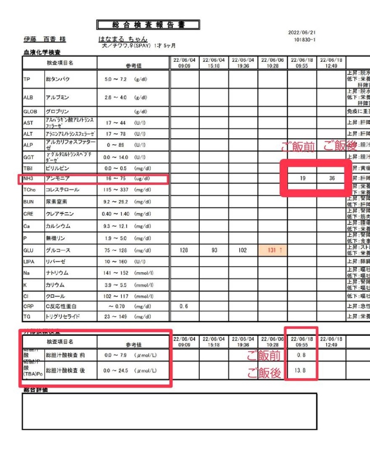 なんと…アンモニアと総胆汁酸が参考値の範囲内になりました…!!!!