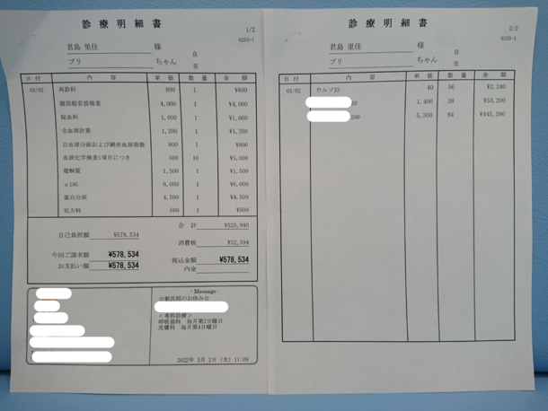 血液検査、超音波エコー検査、そして28日分のお薬代です💊