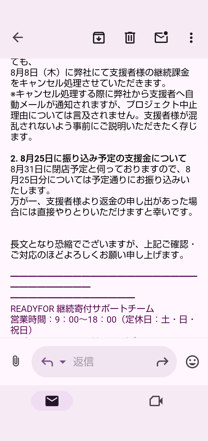 払い戻しをご希望される方のこ対応について問い合わせがありました。
