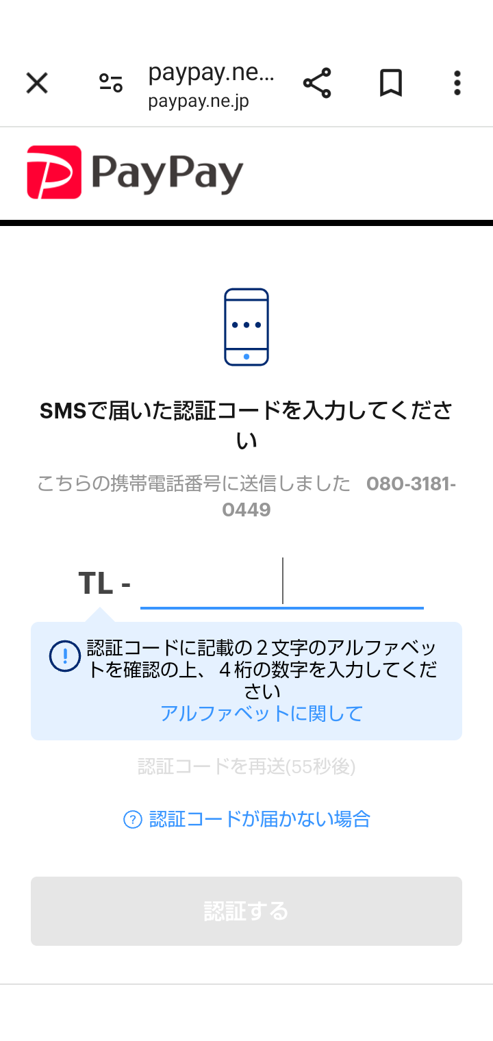 「発行されたコードをナントカに貼り付けて次の画面に行きなさい」