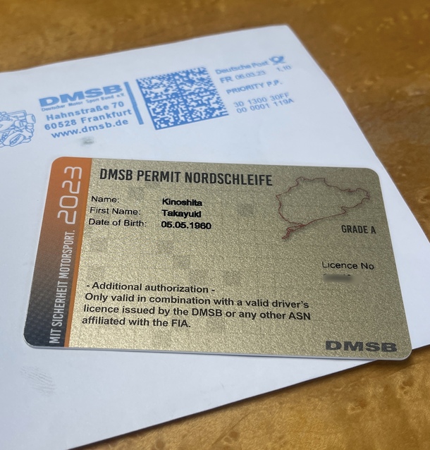 DMSBドイツモータースポーツ協会から「2023年ニュルブルクリンク専用ライセンス」が発給されました。