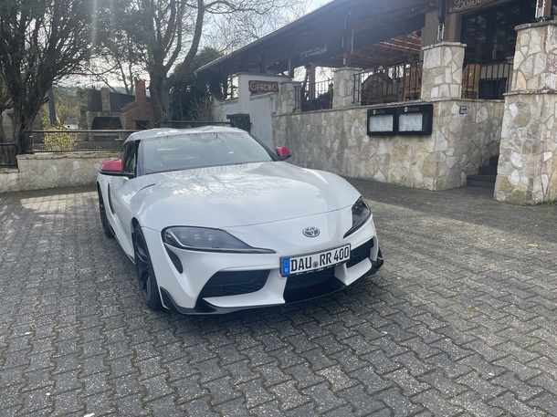 チームから借りているスープラが実はレアモノだってこと、いま気がついた。頻繁に写真せがまれるから、「これ、珍しい?」って聞いたら、「欧州限定200台のGRスープラSZ-R2.0を知らんで乗ってんのか」って。しかも希少価値抜群のシリアルナンバー「1/200」。とたんにニコニコで、早速YouTube番組にするしかないっしょ。