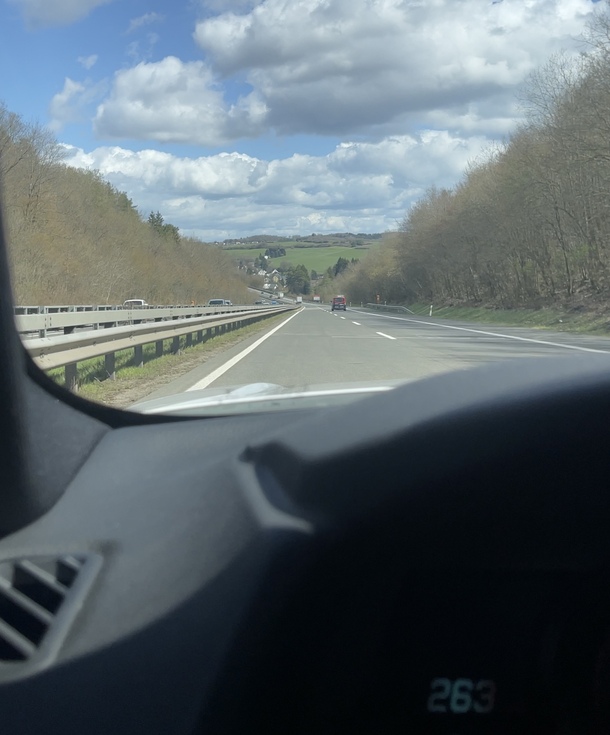 ニュルブランチからアウトバーン入口まで5分ぐらいの距離なので、気分転換にひとっ走りしています。愛犬と河川敷を散歩する手軽さで、250km/h全開です。庭先に滑走路があるみたい。