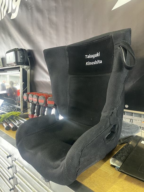 専用シートパッド特注してもらった。フォーミュラ時代を含めても、このクオリティははじめてです。チームにレギュラー対応してもらった感動でウルウルです。