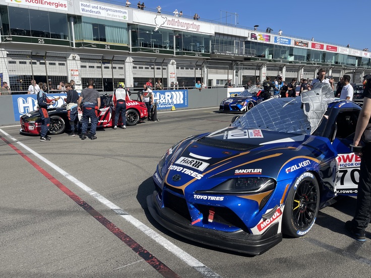 トーヨータイヤの2台は予選クラス1-2。ひとつ前にはヨコハマエースのM4GT3。ひとつ後ろはミシュランのポルシェGT3。とんでもないところからのスタート♪